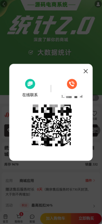 前端支持客服设置按钮的页面点击发起咨询时,先弹出显示在线客服、电话客服、二维码等选项,再点击在线客服时发起在线咨询。